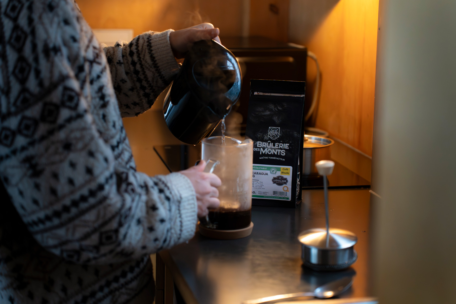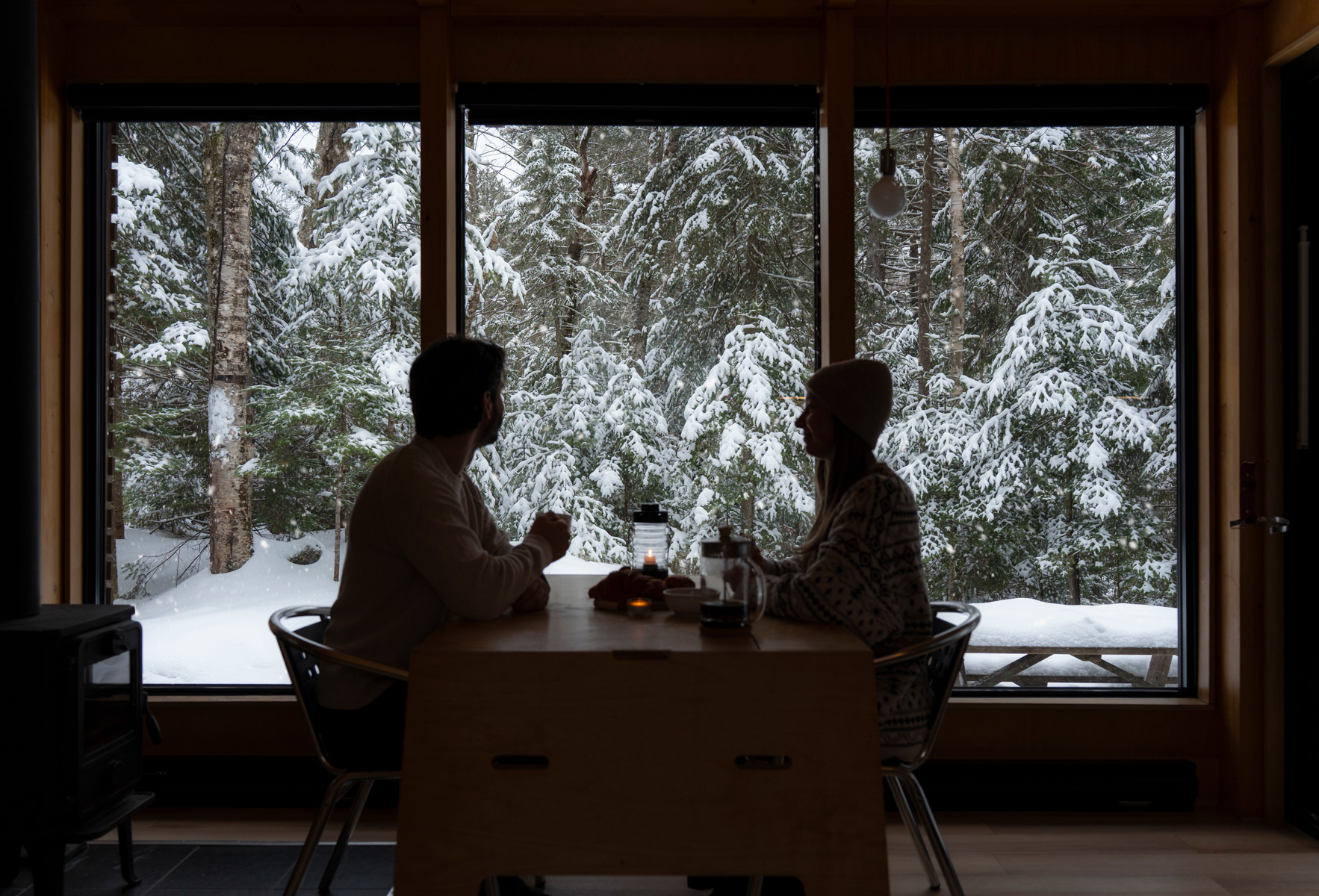 Je pense sincèrement que la meilleure façon de profiter du parc est de séjourner directement à l’intérieur dans un des chalet EXP de la SÉPAQ. Avec leur design minimaliste en bois, ces petits chalets modernes sont conçus pour accueillir deux personnes. L’intérieur est vraiment confortable : on y trouve un petit poêle à bois, un lit (il faut apporter sa propre literie, comme un sac de couchage), un coin cuisine pour se préparer de bons repas, ainsi qu’une salle de bain complète avec douche. Un vrai luxe en plein parc national! Mon gros coup de cœur, c’est sans hésitation les grandes fenêtres qui offrent une vue directe sur la nature environnante. On a presque l’impression d’être dehors, mais tout en profitant du confort du chalet. On a bien profité des activités plein air du parc, mais j’ai aussi adoré les petits moments calmes passer à relaxer au chalet.