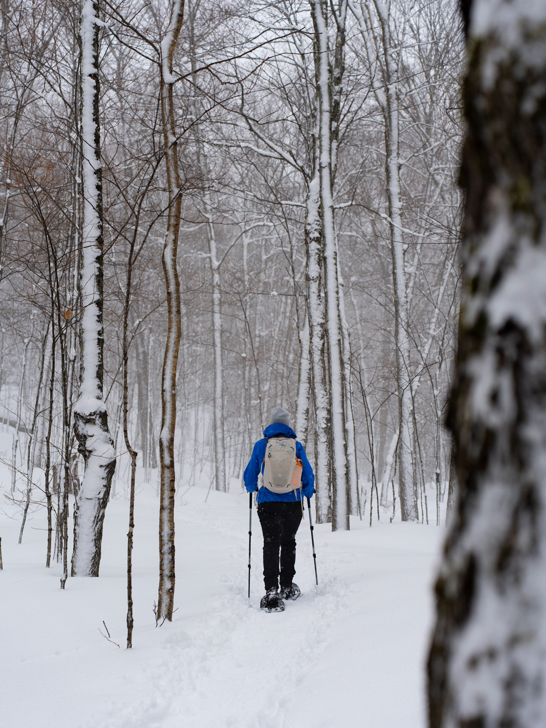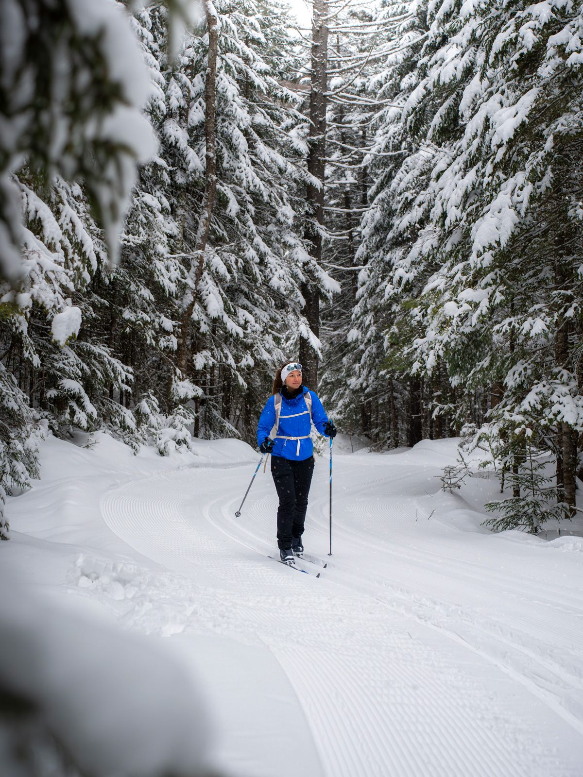 Une de mes activités préférées en hiver, c’est le ski de fond! Et dans le parc national du Mont-Tremblant, les options ne manquent pas! Les sentiers étaient en parfaites conditions, avec de belles pistes fraîchement tracées. Si tu cherches un parcours relativement facile, j’ai adoré le sentier du Bois-Franc, une boucle de 13km avec un dénivelé d’environ 90 m. À mi-parcours, il y a un petit refuge, parfait pour se réchauffer et prendre une bouchée. À plusieurs endroits du parcours il y avait de grands sapins enneigés, c’était magique!